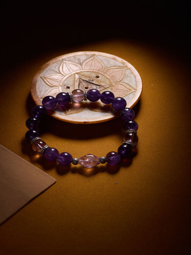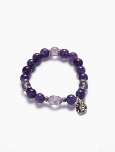 Amethyst Peaceful Energy Bracelet with Tibetan Silver Charm
