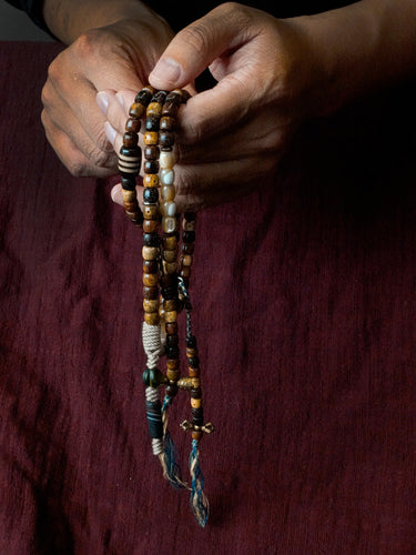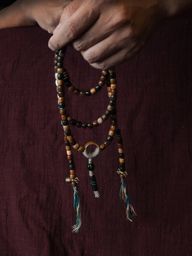Blessing Energy 108 Mala Necklace with Dzi Beads and Agate Accents – Sacred Protection