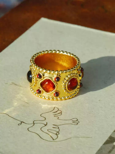 Courageous Spirit Colored Glaze Ring | Gold-Plated Design with Natural Glaze Accents