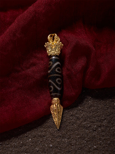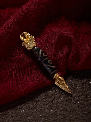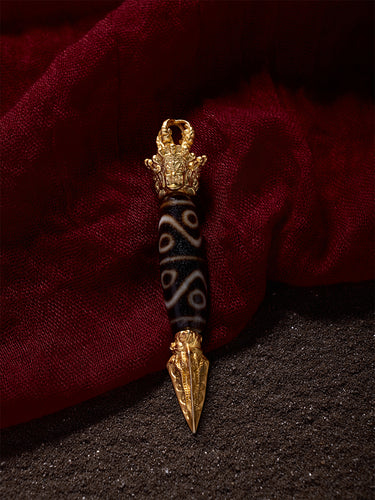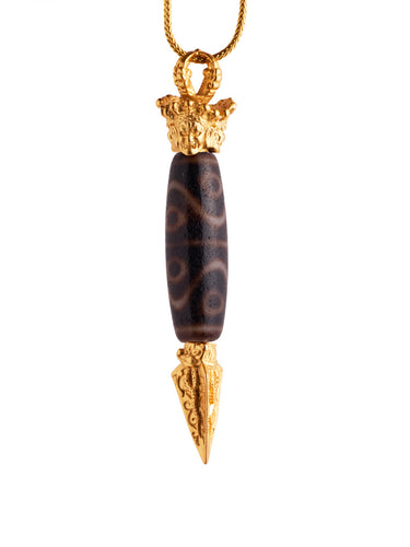 Eight-Eye Dzi Bead Pendant – Tibetan Amulet for Good Luck with Gold-plated Accents
