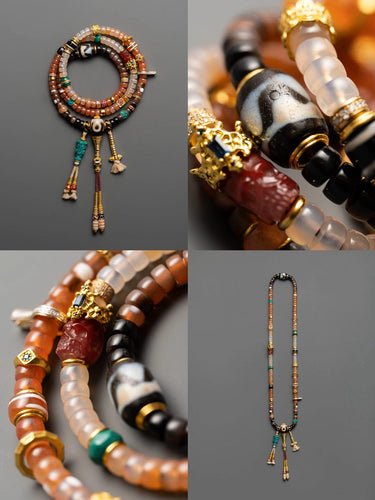 Craft: Hand-strung, Inlaid Gold Totem Accents, Artisan Tassel Finish