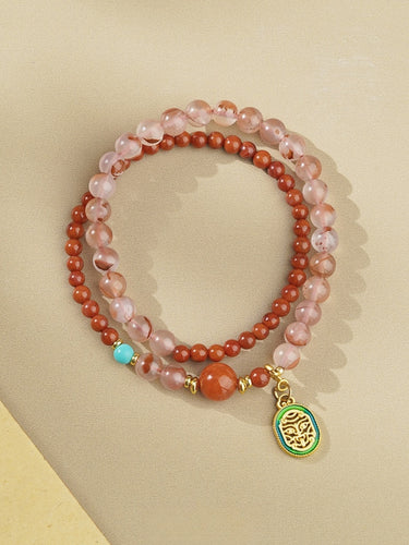 Highland Pulse Bracelet – Lucky Energy, South Red Agate, Turquoise, Gold Charm