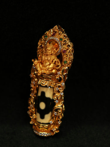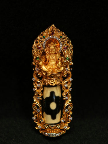 Prosperity Guardian Pendant – Dzi Beads, Gold-Plated Design for Wealth and Protection