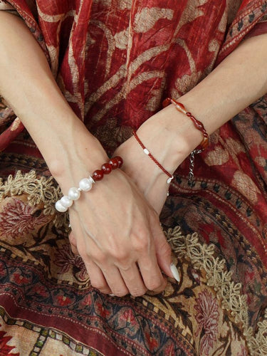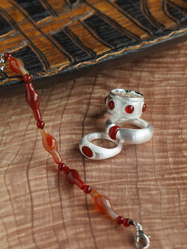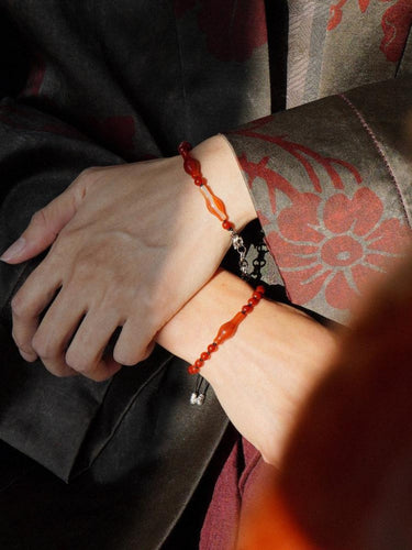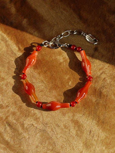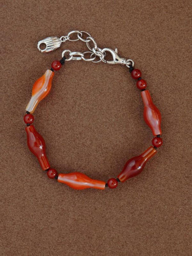 Fire Agate Flame Bracelet – Tibetan-Inspired Red Agate Energy Beads with Sculpted Flow Design