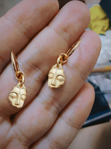 Serene Buddha Drop Earrings Sterling Silver Gold for Blessing Presence