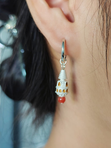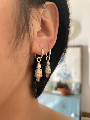 Square Stupa Earrings – Sterling Silver & Gold-Plated Design