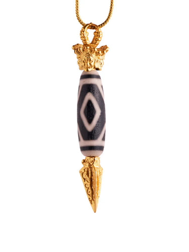 Tiger Tooth Dzi Bead Pendant with Gold-Plated Accents – Courage and Protection Amulet